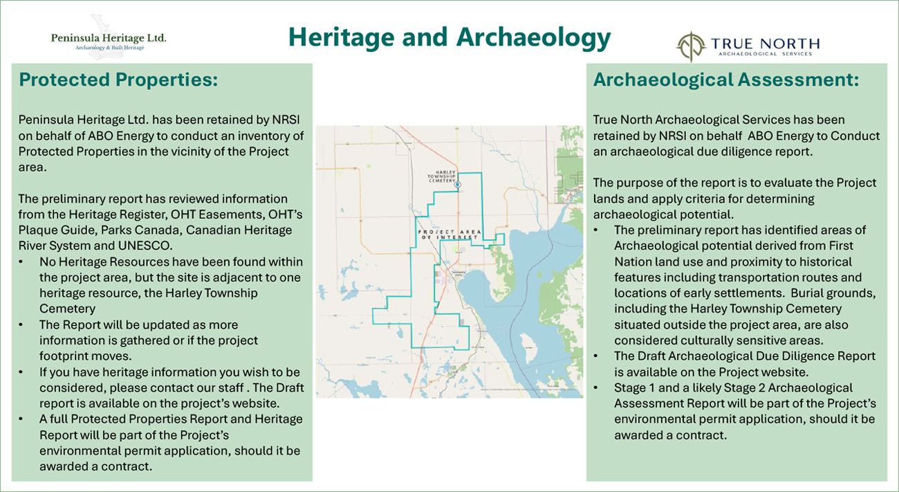 Environmental permits are not required to be submitted for the RFP. However, ABO Energy is undertaking preliminary studies to assess impact including: