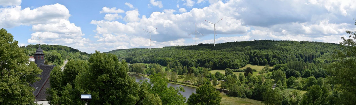 Visualisierungen sind Fotomontagen, die von verschiedenen Orten in der Umgebung aus verdeutlichen, wie der realisierte Windpark aussehen würde. Mit Hilfe eines Computerprogramms können Experten die Windräder anhand von diversen Referenzpunkten perspektivisch korrekt in das Landschaftsbild einfügen. So können sich Bürgerinnen und Bürger schon heute ein realistisches Bild vom geplanten Windpark machen.