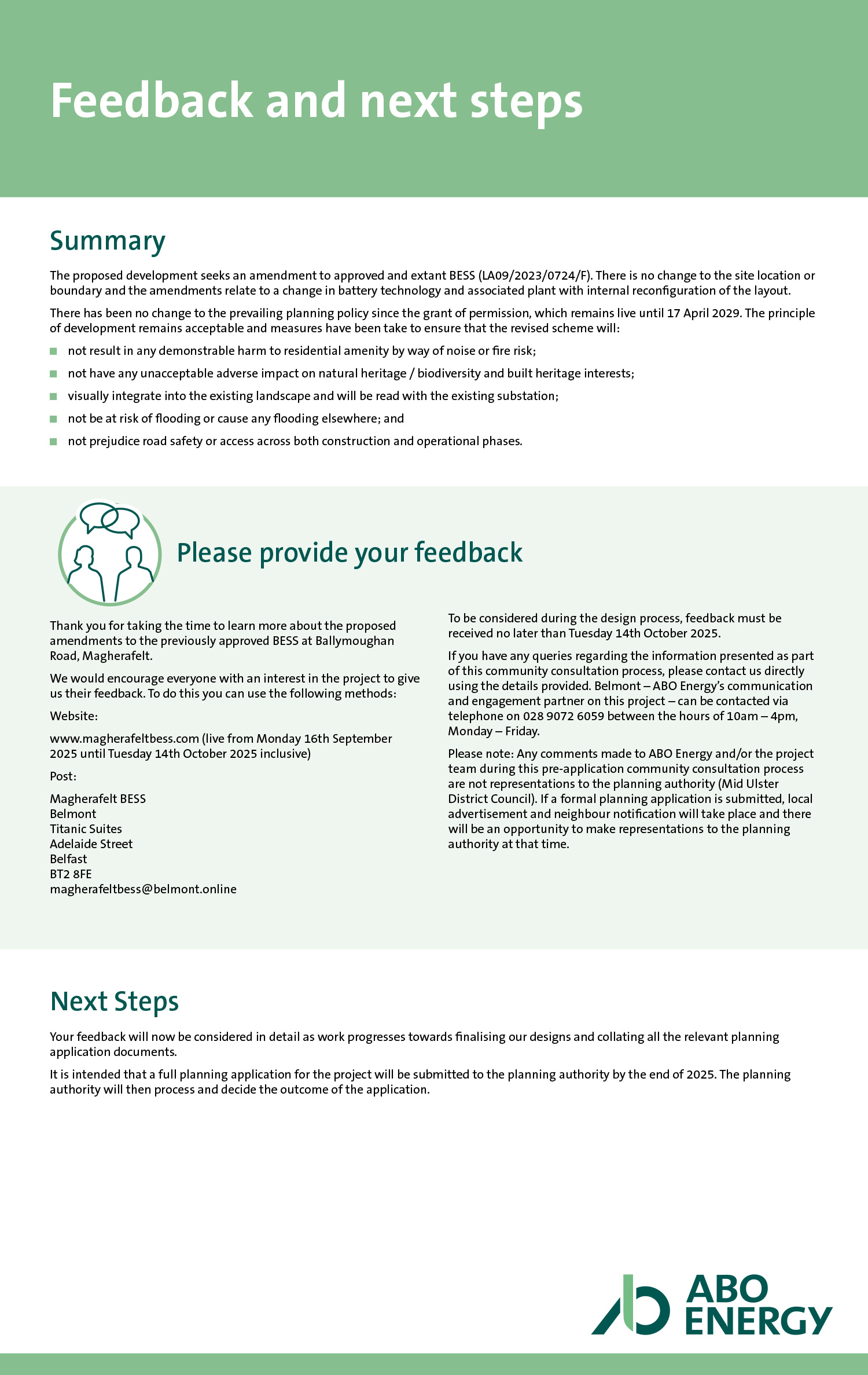 If you have any questions about the Magherafelt BESS project, or would like to share your feedback, please complete the form below: